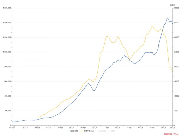 这个我想也不难理解,过去20年,真的等到出口下滑,产业链预期开始转差的时候,房地产公司往往也需要等到政策出来才敢逆周期,只不过最近这次出口走弱的时候,我们还在执行三道红线。