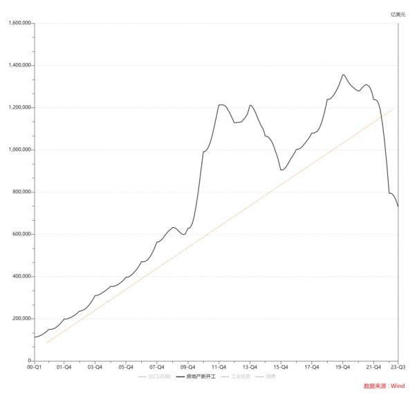 很有可能这个问题本质上就是没有具体经验,只能开一枪,然后看情况再决定要不要救回来......你说房地产新开工可能未来稳态是10亿平米,这个数字就算是对的,房地产新开工面积要是跌到10亿平米就跌不动了,那这个稳态可能就要高于10亿平米了。L型经济我们看得多,很少看到L型的资产吧,都是超跌反弹。