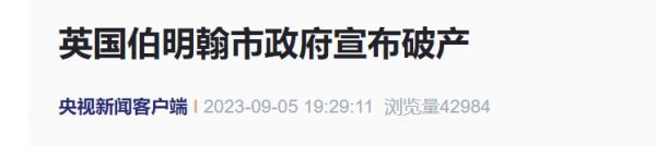 据央视新闻,当地时间9月5日,英国第二大城市伯明翰的市政委员会宣布该市破产。