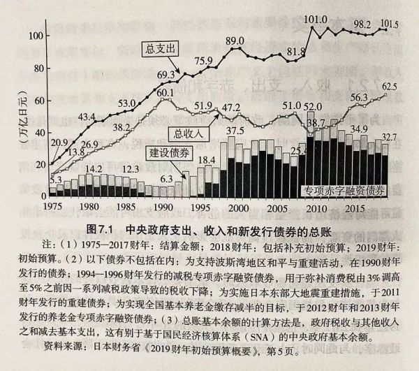 (日本的财政负债在1990年泡沫破灭后开始快速提升)