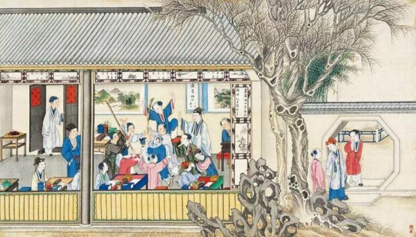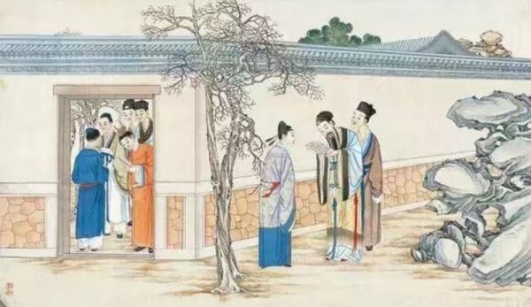 图:孙温绘《嗔顽童茗烟闹书房》。三张图看下来,不难认出谁是贾瑞,谁是撺掇茗烟闹事+与王熙凤一起设局敲诈贾瑞的贾蔷小哥。认不出来的评论区提问。