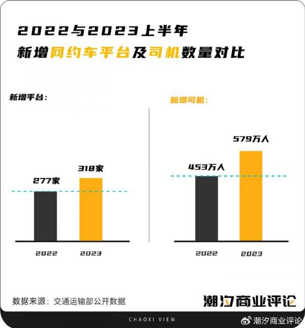 而与2022年同期相对比,仅一年时间网约车行业便涌入了41家平台,以及多达126万名驾驶员。