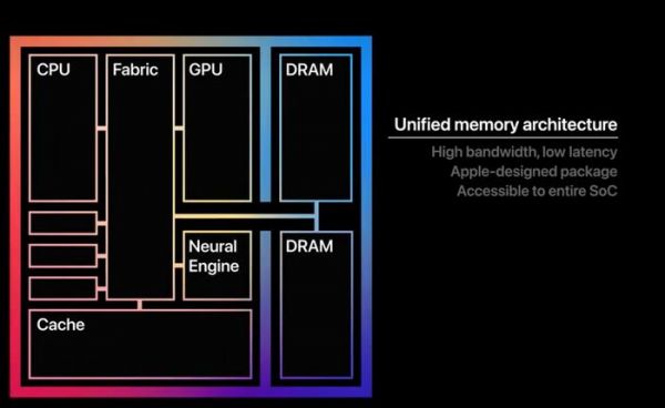 虽然M2的性能并不差,甚至考虑到能比而言在移动端处理器中都是相当优秀的,但是,8G的运存却直接限制了M2处理器的发挥。为了让M系列芯片拥有出色的能耗比和性能,苹果选择了统一内存架构,也就是CPU与GPU共享一套内存,通过缓存与内存的互通,让CPU与GPU可以更轻松地进行数据互通,提高系统运行效率。