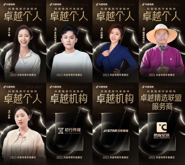 此次作者峰会上,抖音电商为践行抖音电商作者精神的优质伙伴代表颁发了荣誉奖项,包括20位卓越个人、9家卓越机构和3家卓越精选联盟服务商,鼓励更多抖音电商作者生态伙伴投入到电商事业中,为更多的人“引领美好生活”,实现共同成长。具体获奖情况如下: