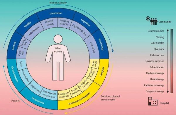 老年癌症患者整合照护(Integrated Care for Older People)示意图,图片来自《柳叶刀:健康长寿》Integrated care for older people with cancer: a primary care focus