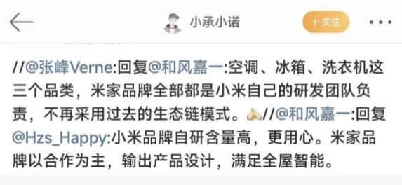 此前在2022年,张峰也曾表示,“空冰洗”三个品类全部都是由小米自己的研发团队负责,不再采用过去的生态链模式。