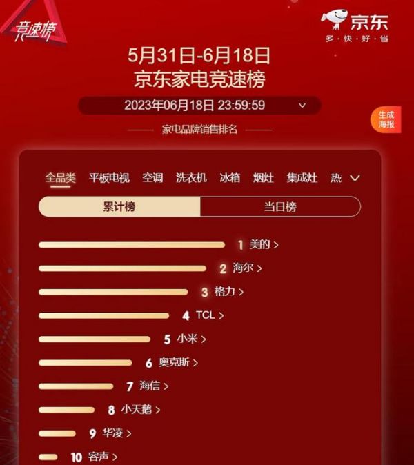 今年618期间的数据也印证了这一点。仅在京东平台,小米便展现了不俗的销售业绩。据京东数据显示,今年5月31至6月18日期间,小米在京东家电品牌销售竞速榜排名中位列全品类第五。其中,平板电视品类第三,空调品类第五,“厨小”第六,洗衣机第八,冰箱第九。
