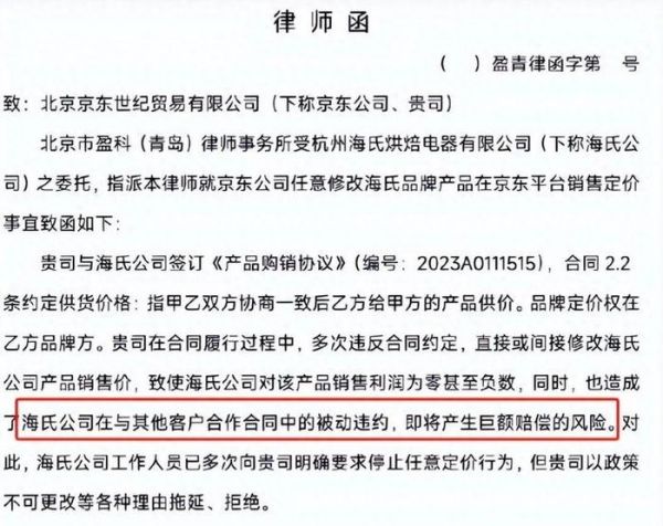这一对消费者让利的行为,却让京东收到了品牌方“海氏”的律师函。