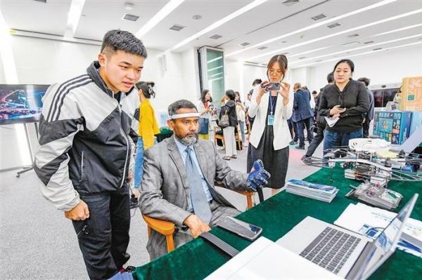碑林环大学硬科技创新街区,驻华外交官现场体验科创产品。(记者 窦翊明 摄 资料图片)