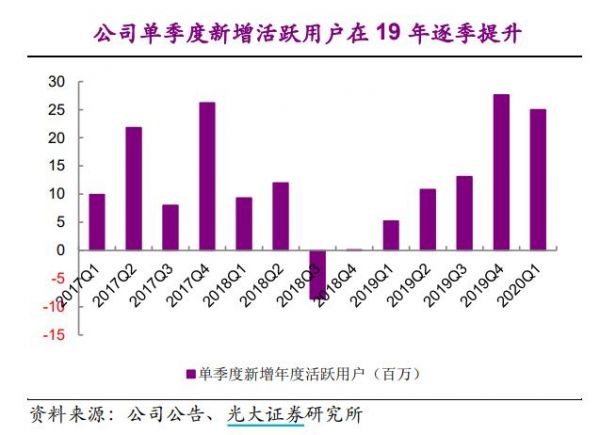 以至于后来不断消费升级的我甚至瞧上了京东,第一部iPhone就是在京东买的。而也正因为我这种低线用户的消费升级,从2019第一季度开始,京东单季度新增用户规模逐季提升,并在第四季度达到了2800万的高点。
