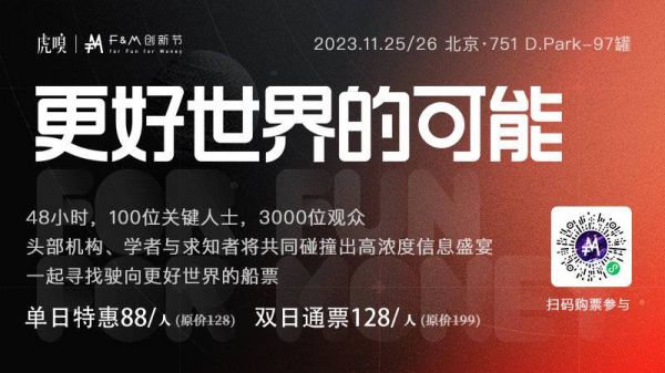 更多议程,进入【虎嗅FM创新节】小程序即可查看、追踪。最新信息逐日解禁中,11月的最后一个周末,我们线下见。