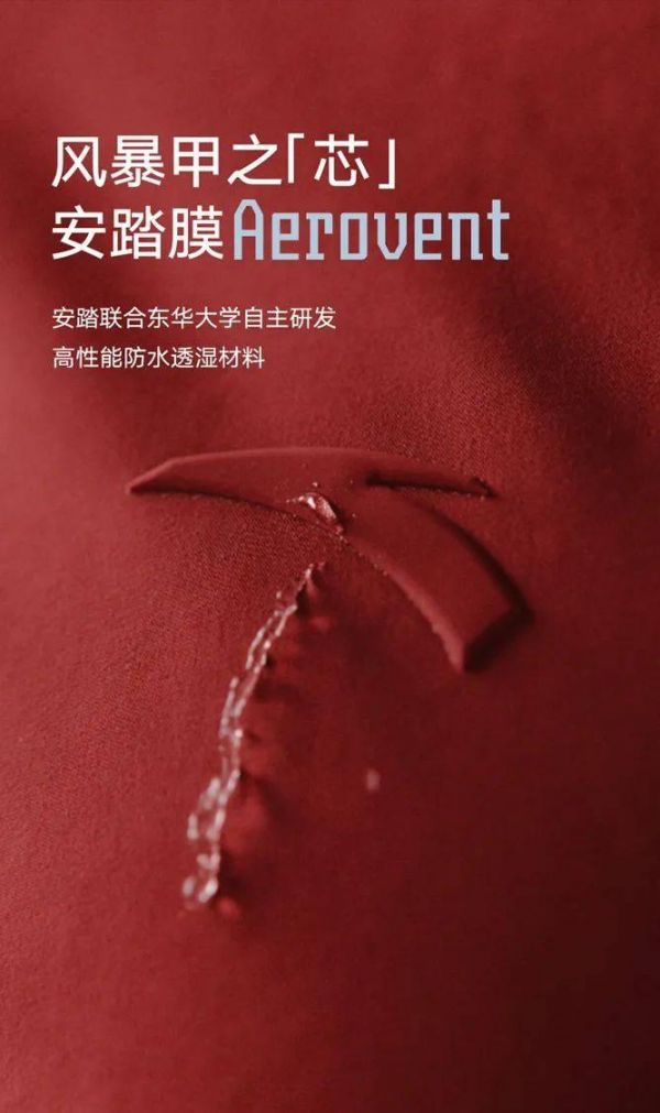 在前文墨脱科考中大放异彩的风暴甲冲锋衣,就是首次搭载「安踏膜」的产品。经过第三方权威机构检测,风暴甲防水透湿性能比肩国际品牌。