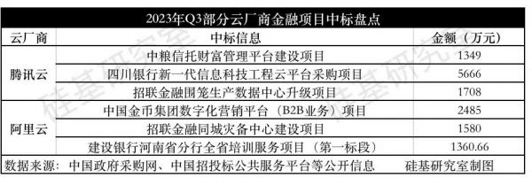 以金融领域为例,一向是腾讯云的优势,但目前包括阿里云在内的云厂商都在重兵投入。根根据《科技十点见》的盘点,今年Q3在超过1000万的金融大单方面,阿里云与腾讯云平分秋色。