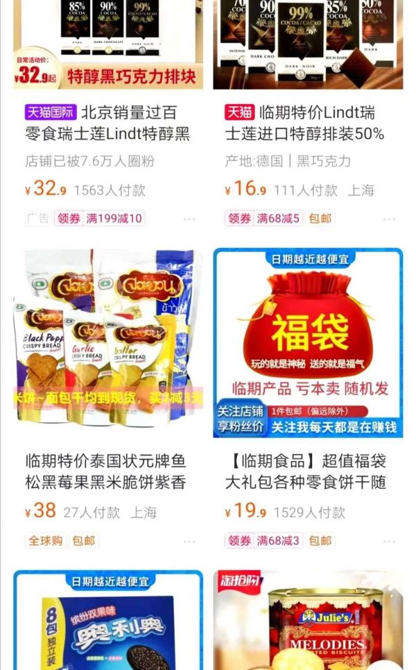 90后学生李玫最近被种草了临期食品,她告诉豹变,平时爱吃,看到这么便宜的零食,出于好奇在电商平台搜了搜,点进去发现挺便宜就买了几份。