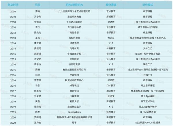 而明星们的“跨界”早已逐渐延伸到教育领域。在明星跨界教育的形式上,一般包含项目投资和创办学校两种。