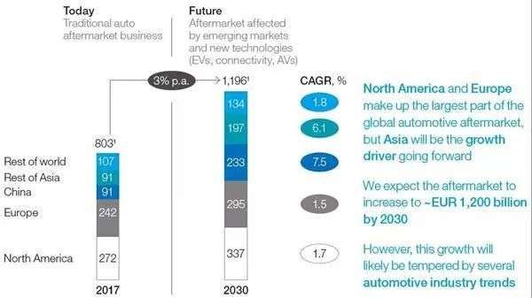 此外,麦肯锡曾预计,到2030年,汽车在软件和电子电气架构方面的市场规模将达到4千多亿美金。其中汽车软件市场将以每年9%的速度增长,到2030年整个市场规模将达到840亿美金。