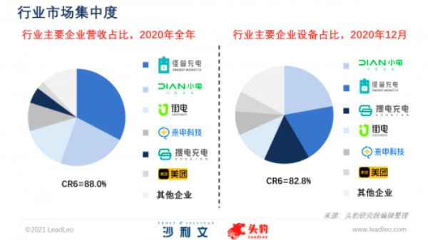 不过,新玩家的大门已经关上,市场早已呈现出两极分化的趋势,“三电一兽”是市场头部四巨头, 艾媒报告显示,2019年上半年“三电一兽”市占率合计达96.7%,其中街电以40.5%的用户份额领跑行业。在沙利文和头豹研究院联合发布的《2021年中国共享充电宝行业白皮书》中,街电、怪兽充电和小电被列为2020年中国共享充电宝行业整体梯队第一梯队,搜电则凭借近两年的快速发展,成为代理模式的头部玩家,TOP6玩家占据88%的营收和82.8%的设备。