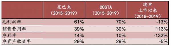 有趣的是,高销售费用率下的星巴克的净利润,却要优于COSTA,其原因主要归功于其优秀的经营管理和租金议价能力。瑞幸咖啡较为特殊,以上市以来现有数据来看,虽然营收一直保持极高的增速,三年时间里门店数量逼近星巴克二十年来的布局,但是两项利润率都不好看,目前从商业模式和产品定价上看,仍达不到星巴克和COSTA 同级别的利润率。
