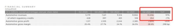 卖车是一方面。特斯拉在二季度交付了超过两万辆Model 3和Model Y,Model S的销量仅为1895辆。Model Y的大获成功显然提振了特斯拉的业绩。而特斯拉的整车毛利率也在不断提高,已经达到了28.4%。财报披露,特斯拉的供应链成本正在不断降低。