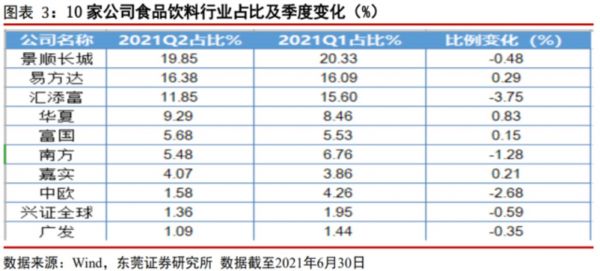 数据显示,10家基金中,有6家对食品饮料行业进行了减持。其中汇添富减持最多,为3.75%,其次是中欧基金和南方基金。