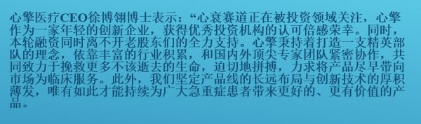 心擎医疗于2017年5月在苏州高新区成立,并在北上广深以及武汉多地设立分子公司及办事处。心擎医疗以心衰领域为起点,致力于构建多器官衰竭生命支持平台,是国内目前产品管线最丰富的急重症体外生命支持系统平台。