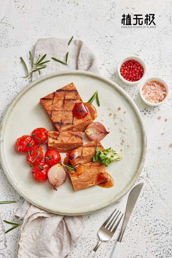 好吃、健康和大块是植无极“大块植物牛肉”的三大关键词:植物牛肉逼真还原牛肉的肌肉纹理、风味与口感;成份为纯植物,配方包含大豆、豌豆、植物油和调味料等,零胆固醇且营养均衡;一整块的植物牛肉,可分切成片、块、条、丁等多种形态。