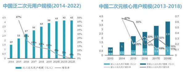 图例:数据来自艾瑞咨询。其中,核心二次元用户指最近半年内每周至少看一次动画或漫画;泛二次元用户指最近半年内至少看过一次动画或漫画。