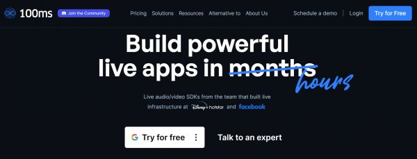 「100ms」成立于 2020 年,当时的创始人还在印度最大的流媒体平台之一 Disney+ Hotstar 工作。 “我们决定构建一个功能,让用户可以在应用程序上自由观看比赛,并与他们的朋友实时进行视频通话、享受比赛。因此我们研究了现有的解决方案,并选择了现有的视频 SDK 提供商之一来执行操作,大概花了4个月的时间才让产品正式运行,” 「100ms」联合创始人兼首席执行官 Kshitij Gupta 表示。