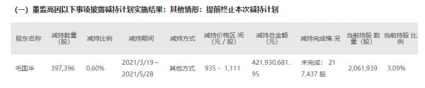 个人的减持计划确实停止了,但这并不影响毛国华通过石头时代继续减持,6月11日,石头时代减持16.73万股,减持人便是毛国华。若以减持价格上限每股1472.88元估算,毛国华套现2.46亿元。