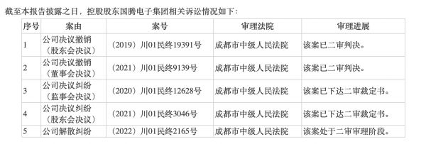 彼时,一审判决已经同意解散国腾电子集团,但何燕不服判决结果,不断提起上诉。根据振芯科技2021年年报,目前该案已处于二审审理阶段。