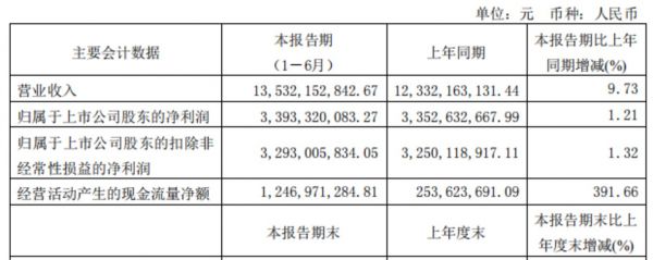 从半年报推测,公司第二季度实现营业收入63.22亿元,同比增长22.19%;实现归母净利润15.64亿元,同比增长11.79%,扭转了一季度负增长的态势。