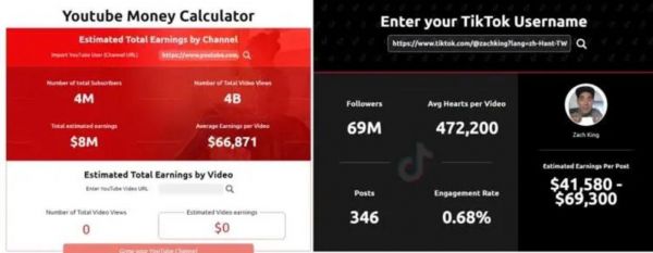 以Zach King为例,在不考虑TikTok Pulse的前提下,我们用Influencer Marketing Hub的计算器估算了他的TikTok账号及Shorts频道的变现能力。