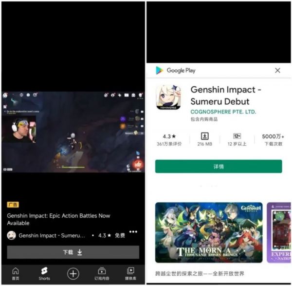 在博客中,YouTube提到Shorts的广告将投放在Shorts的短视频信息流中。品玩Global浏览YouTube移动端发现,已经有广告主向Shorts版位投放广告。应用类广告可以点击下方按钮跳转至Google Play商店直接下载。