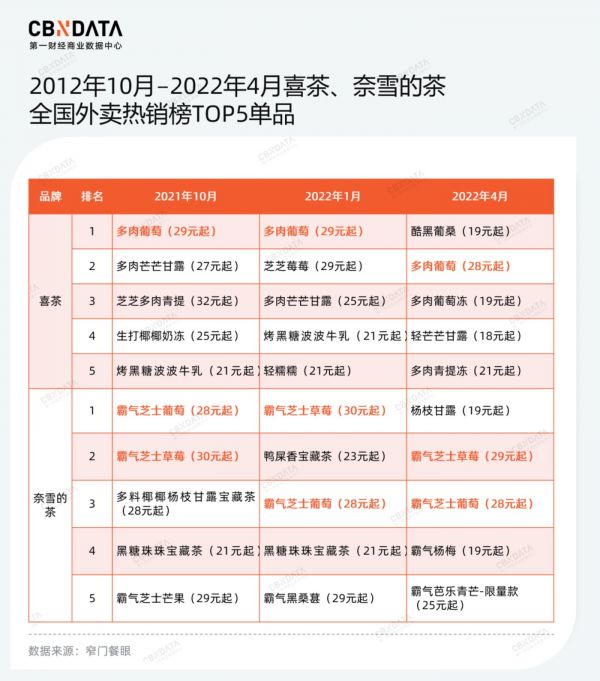 不同于经典单品价格的小幅微降,喜茶、奈雪的新品价格则全面压低,这大大降低了消费者的尝新门槛,不失为品牌引流的有效手段。窄门餐眼数据显示,喜茶、奈雪4月份销量排名TOP1的单品——酷黑葡桑、杨枝甘露,均是品牌于当季推出的新品。