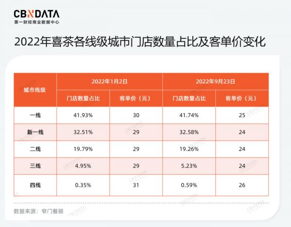 全面降价半年来,喜茶、奈雪的客单价均被显著拉低。窄门餐眼数据显示,目前喜茶的人均消费为24.75元。而今年1月的数据则显示,喜茶在各线级城市的人均消费均在29元以上。奈雪的茶2022半年报数据也显示,过去半年间品牌客单价相较去年同期下降了6.8元。