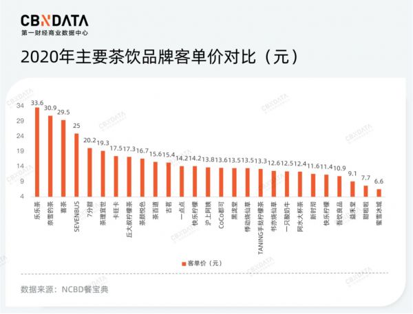 但茶饮行业确有梯队之分。根据NCBD餐宝典2020年对茶饮品牌的客单价分级,可以看到乐乐茶、奈雪的茶、喜茶以29-33元价位段稳居第一梯队。