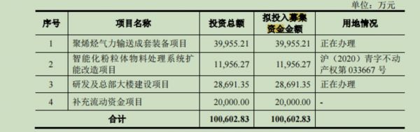 招股书显示,博隆技术是提供以气力输送为核心的粉粒体物料处理系统解决方案的专业供应商,集处理过程方案设计、技术研发、核心设备制造、自动化控制、系统集成及相关技术服务于一体。公司以合成树脂行业为主要应用领域,根据用户的需求和物料的特性定制单一或综合解决方案,使用户的生产过程实现自动化、智能化操作,达到高能效、低损耗、经济环保的物料处理目标。该公司的主要产品包括粉粒体气力输送技术为核心的成套系统,计量配料、功能料仓、过滤分离、净化除尘等单一功能系统,以及相关设备和部件。