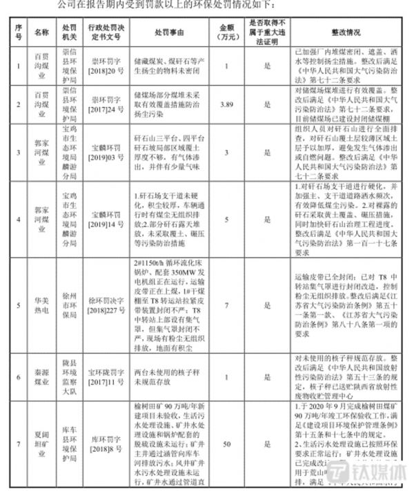 数据来源:招股说明书 (注:徐矿股份部分环保处罚情况)
