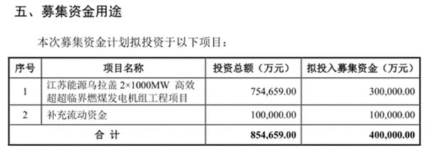 徐矿股份此次IPO欲募集40亿元分别用于江苏能源乌拉盖 2×1000MW 高效超超临界燃煤发电机组工程项目、补充流动资金,其中江苏能源乌拉盖 2×1000MW 高效超超临界燃煤发电机组工程项目的投资总额为75.47亿元,该项目徐矿股份还要“自掏”45.47亿元才能完成。