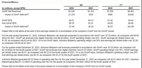 即便掏尽底牌,暴雪娱乐2022全年净利润6.25亿美元,还是比2021年的6.98亿美元少了7300万,下降10.4%。