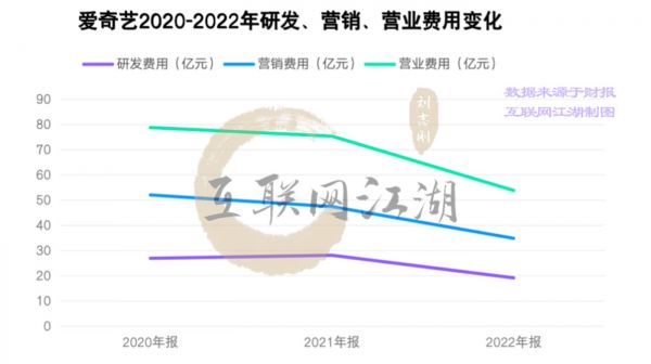 2022年的爱奇艺研发费用少了大约9个亿,营销费用比21年少了12亿多,营业费用少了21亿多。