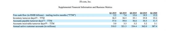 2020年Q1,京东应付账款周期为51.7天,为几个季度以来新低,当季应付账款规模为765亿元,较上年同期减少140亿元,其原因固然有许多,诸如疫情之下供应商现金流普遍吃紧,京东理应在此时对供应商多加照顾。