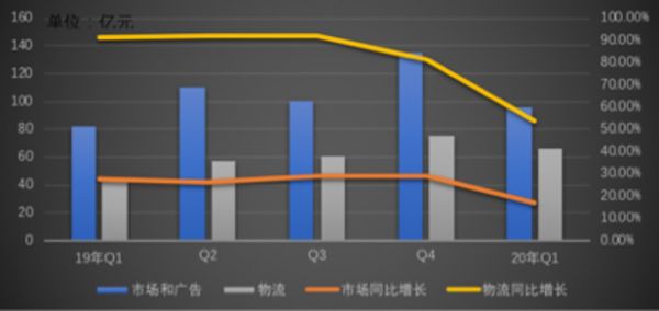 在线营销收入和物流收入增速都在放缓,但物流的下行速度更快,由于京东物流现有服务相当部分为体系内商家(亦有个人业务),其加速下滑可证实开放平台内商家在Q1的低沉,对于行业而言,非刚需品类和及时收货的增长是被严重抑制的。