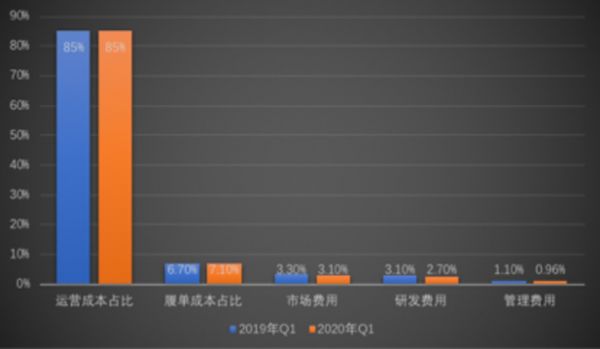 我们整理2019年Q1和2020年Q1运营成本和费用占比情况,见下图