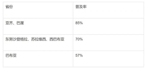 表1:中学教育普及率;制表:Diinsider;数据来源:OBG