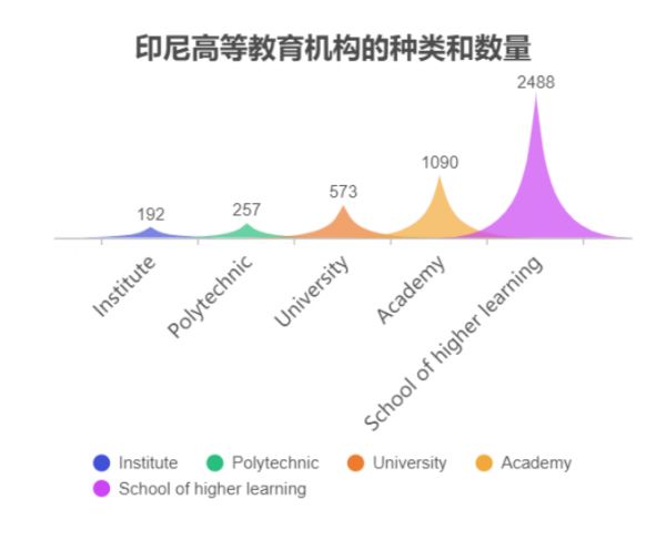 图1:印尼高等教育机构的种类和数量;制图:Diinsider; 数据来源:印尼研究、技术和高等教育部
