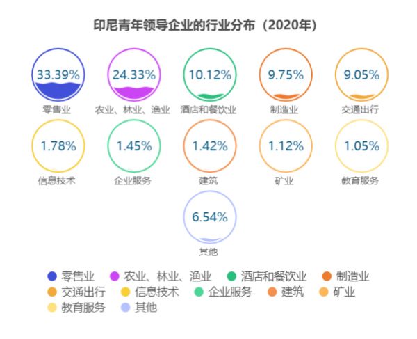 图3:印尼青年领导企业的行业分布;制图:Diinsider;数据来源:Sakernas