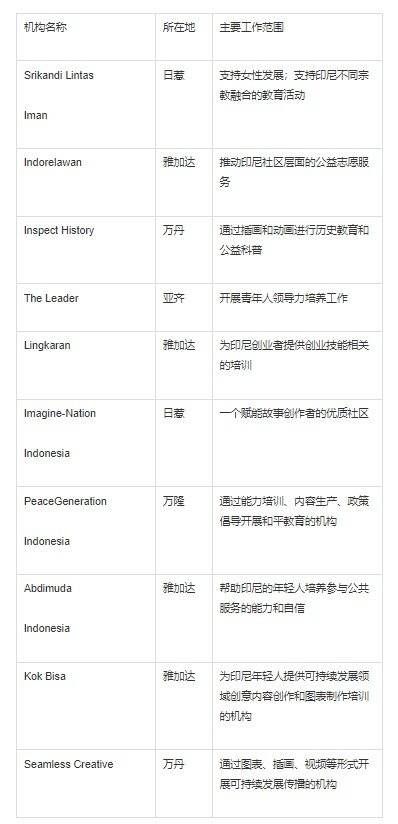 表3:Indika支持的印尼青年创新机构举例;制表:Diinsider;数据来源:Indika Foundation