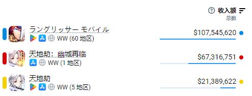 根据appmagic的数据预估,梦战手游近三年的全球收入为1亿美金,天地劫手游为8900万美金。考虑到梦战手游的上线时间是2018年,天地劫手游其实是有新品优势的,但在这情况下仍然不敌,可见双方差距。