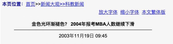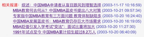 如果仔细研究1997~2022年全国MBA报名人数情况,我们会发现,报名人数在此前的2003年和2015年也分别出现了“回调”,而回溯此前MBA遇冷时期的新闻资讯内容我们发现,争议点无不关于“‘MBA=高薪’、“文凭无用”的价值讨论”。